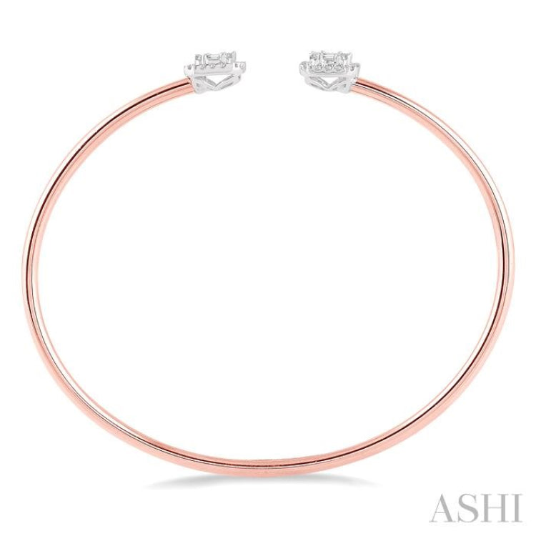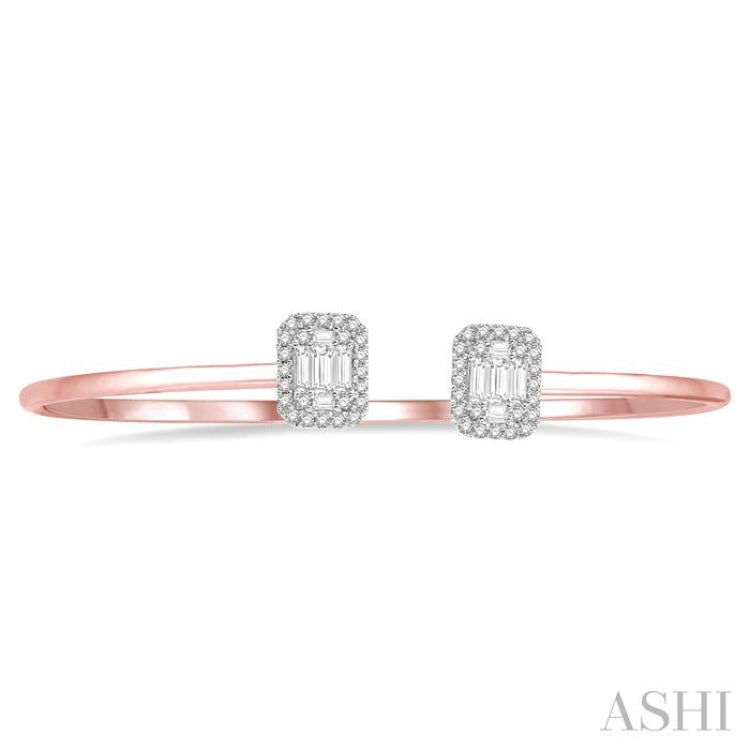 5/8 ctw Emerald Shape Lovebright Open Cuff Diamond Bangle in 14K Rose and White Gold