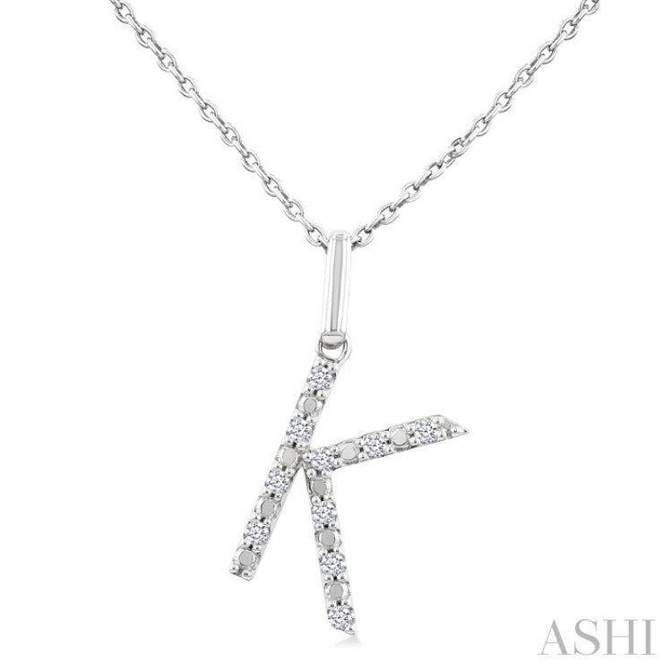 1/20 Ctw Initial 'K' Round Cut Diamond Fashion Pendant With Chain in Sterling Silver